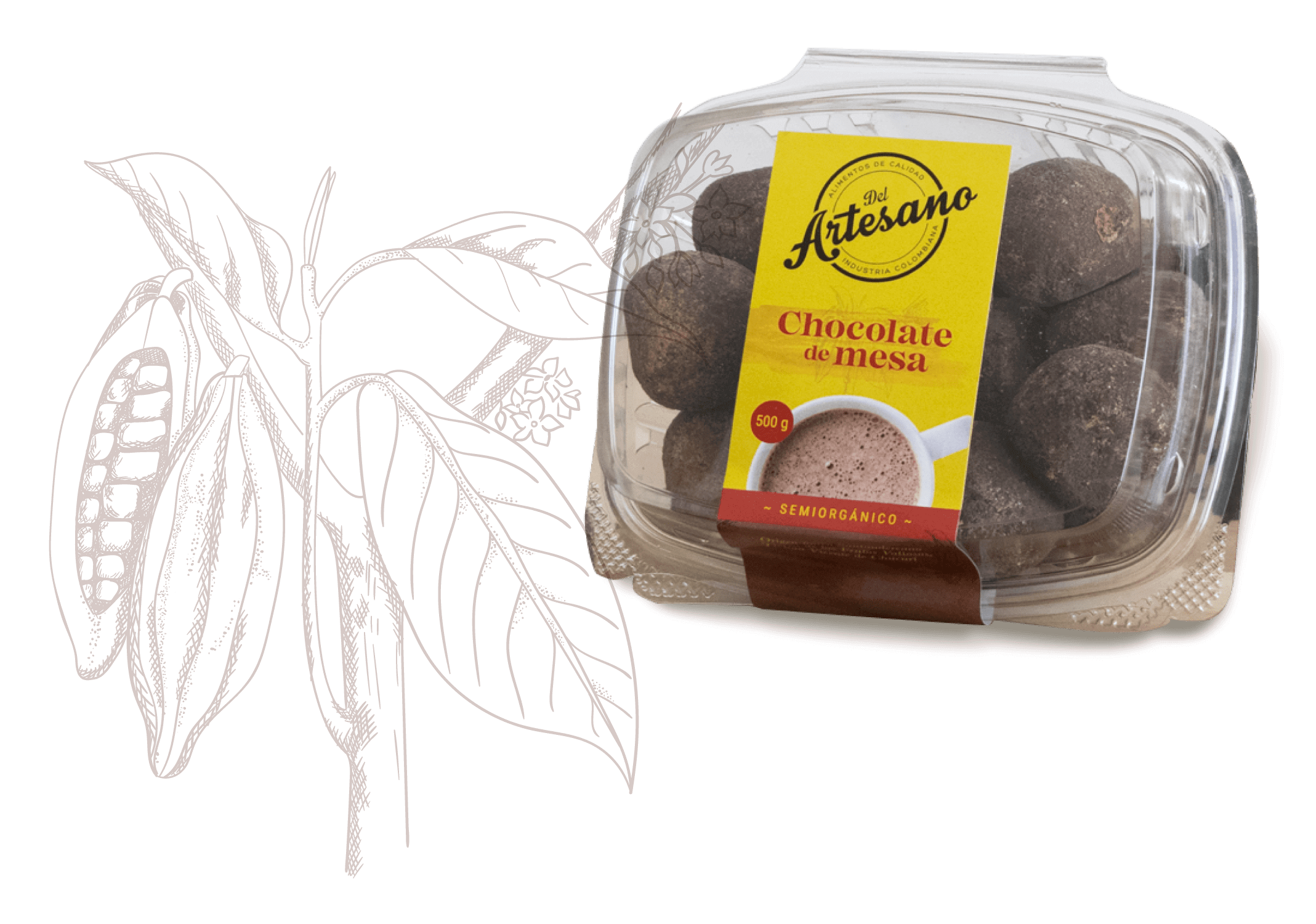 Chocolate de mesa en esferas originario de San Vicente de Chucurí. Semiorgánico y ligero en azúcar. Una esfera alcanza hasta para dos tazas de chocolate caliente.